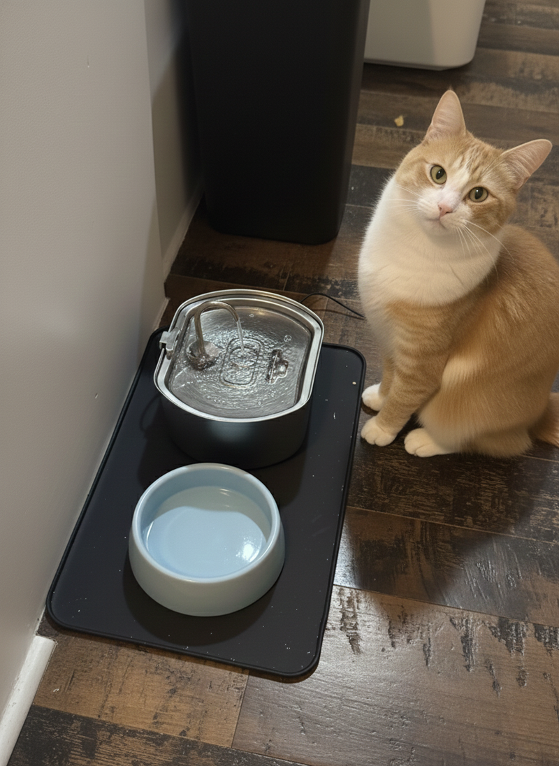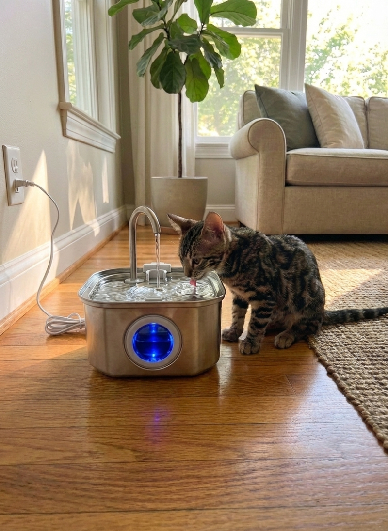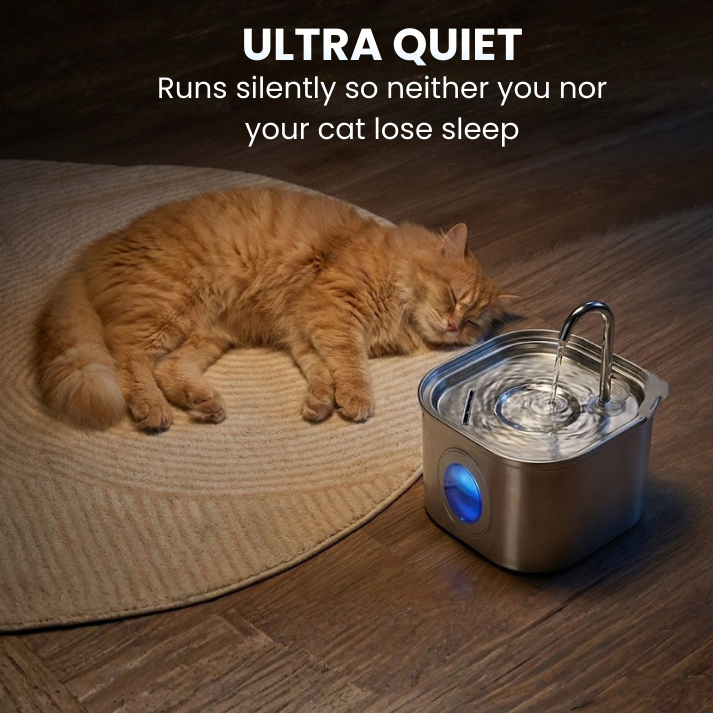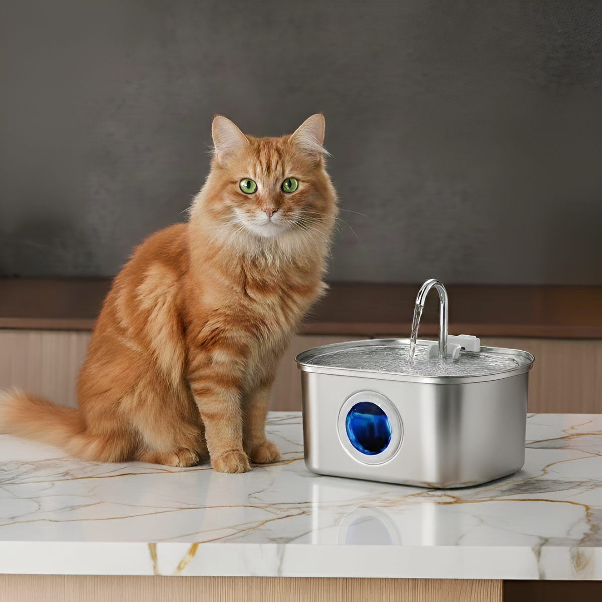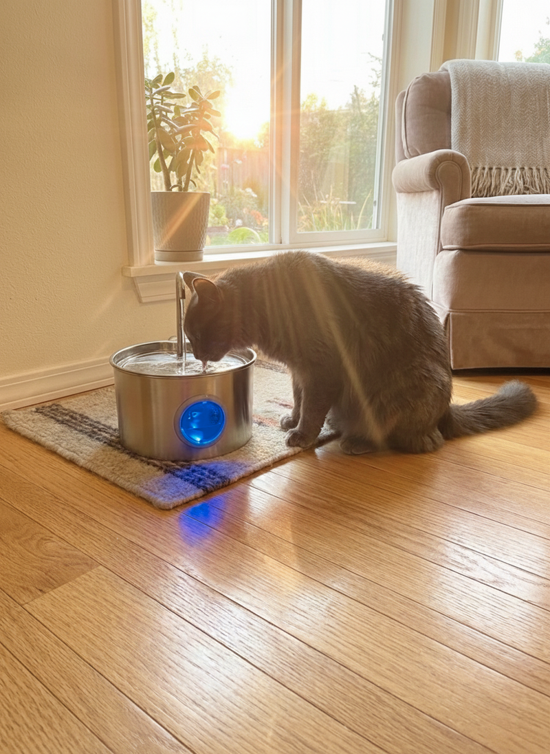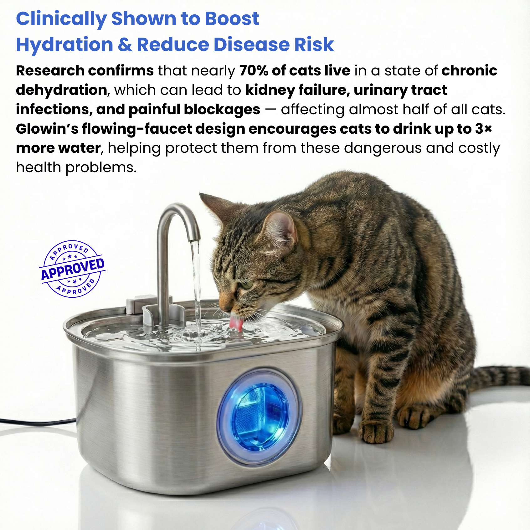 The Glowin™ Stainless Steel Fountain provides a continuous flow of clean, fresh water — encouraging better hydration and helping reduce the risk of UTIs, kidney issues, and dehydration. Made with durable 304 stainless steel and triple filtration, Glowin is a safe, long-lasting solution for cats of all ages.